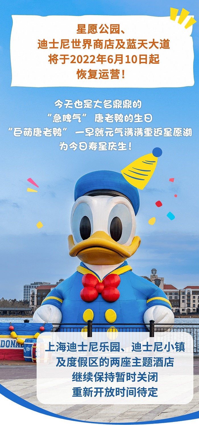 据“上海迪士尼度假区发布”微信公众号消息,星愿公园、迪士尼世界商店及蓝天大道将于6月10日起恢复运营,上海迪士尼乐园、迪士尼小镇及度假区的两座主题酒店继续保持暂时关闭,重新开放时间待定。