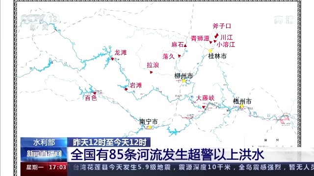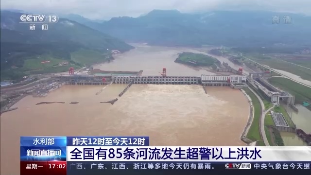 水利部信息显示,昨天(19日)12时到今天12时,全国共有85条河流发生超警以上洪水。