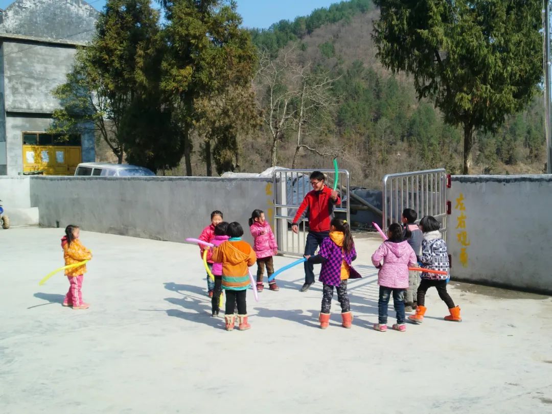 2022年4月8日,袁辉在课后时间,在湖北省恩施土家族苗族自治州建始县高坪镇望坪希望小学陪学生玩耍