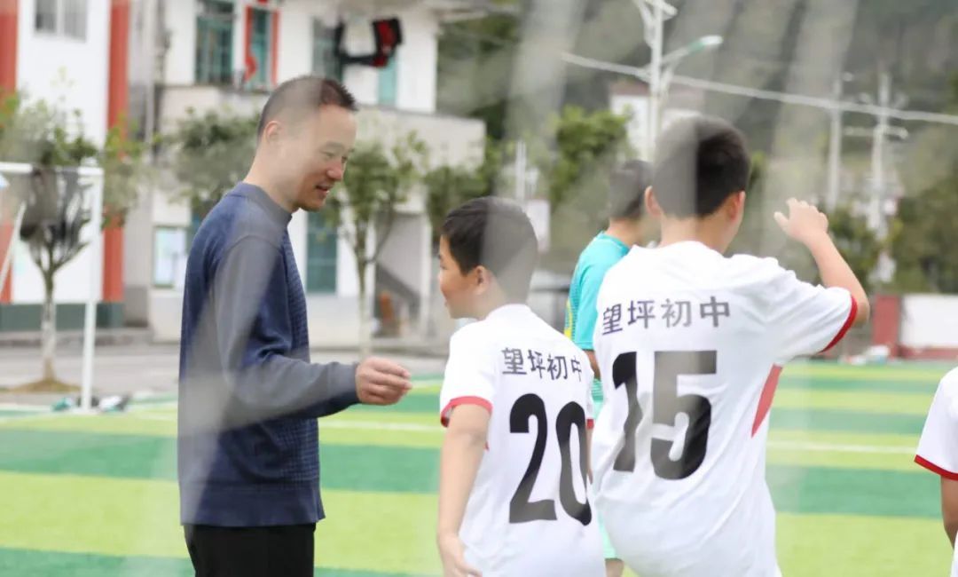袁辉(左一)陪孩子们踢球(梅珂 摄)