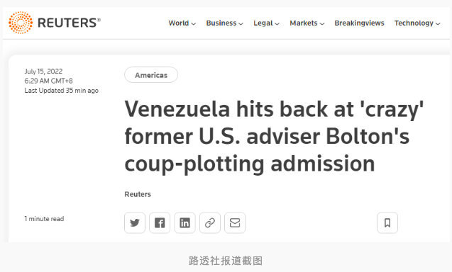 博尔顿承认美国曾策划他国政变,委内瑞拉:疯狂!