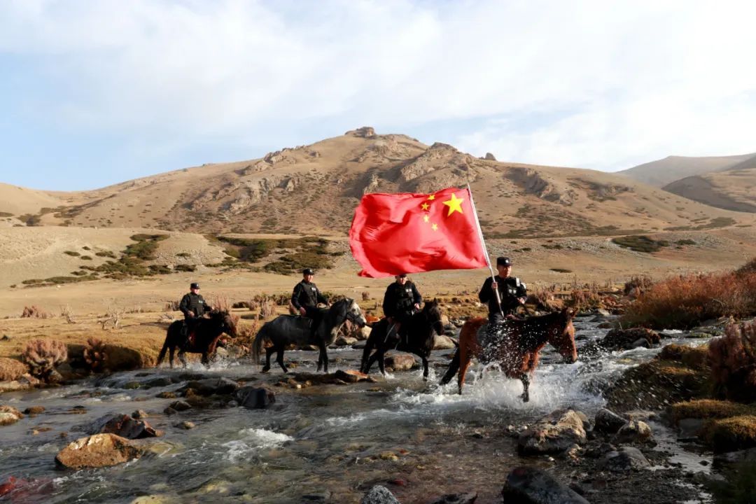 阿思里别克(右一)和战友在边境一线巡逻踏查