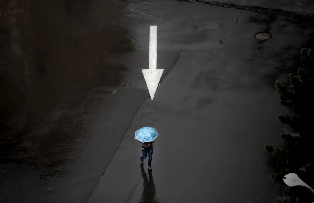 雷电“打高不打低”,举着金属杆状物会增加被雷击的概率。