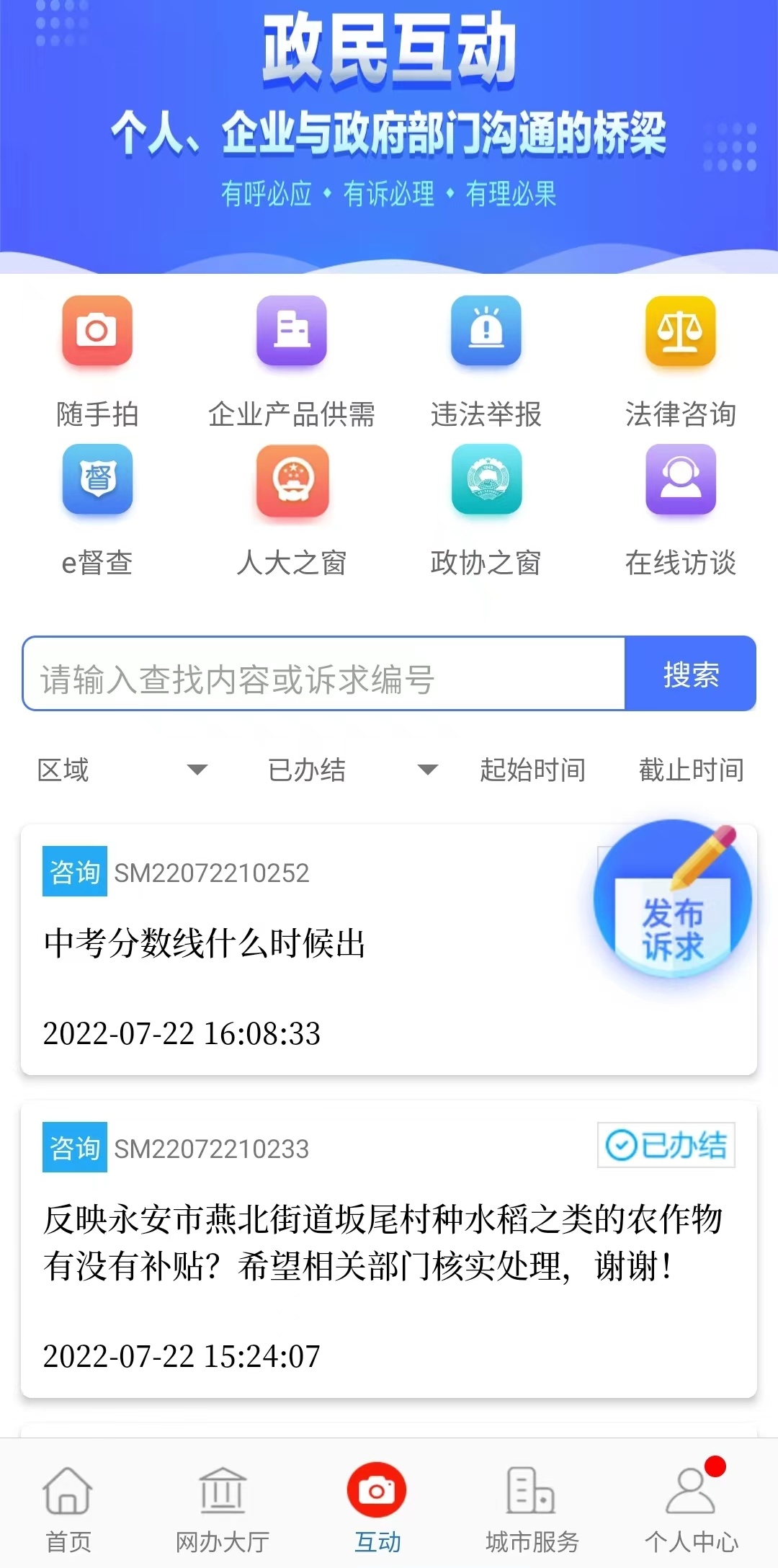 群众留言,干部留心。现在市民有任何困惑,首先想到的是e三明。招生政策、房产证办理、疫情防控政策等咨询件,各级职能部门都逐一回复,高回复率、高办结率背后是群众急难愁盼问题的切实解决。仅今年 6月份,12345平台共受理群众诉求31348件,日均达1045件。其中e三明随手拍7066件,占比22.54%;诉求受理率100%,及时查阅率99.97%,按时办结率99.98%,反馈回复率100%,群众满意率99.83%。