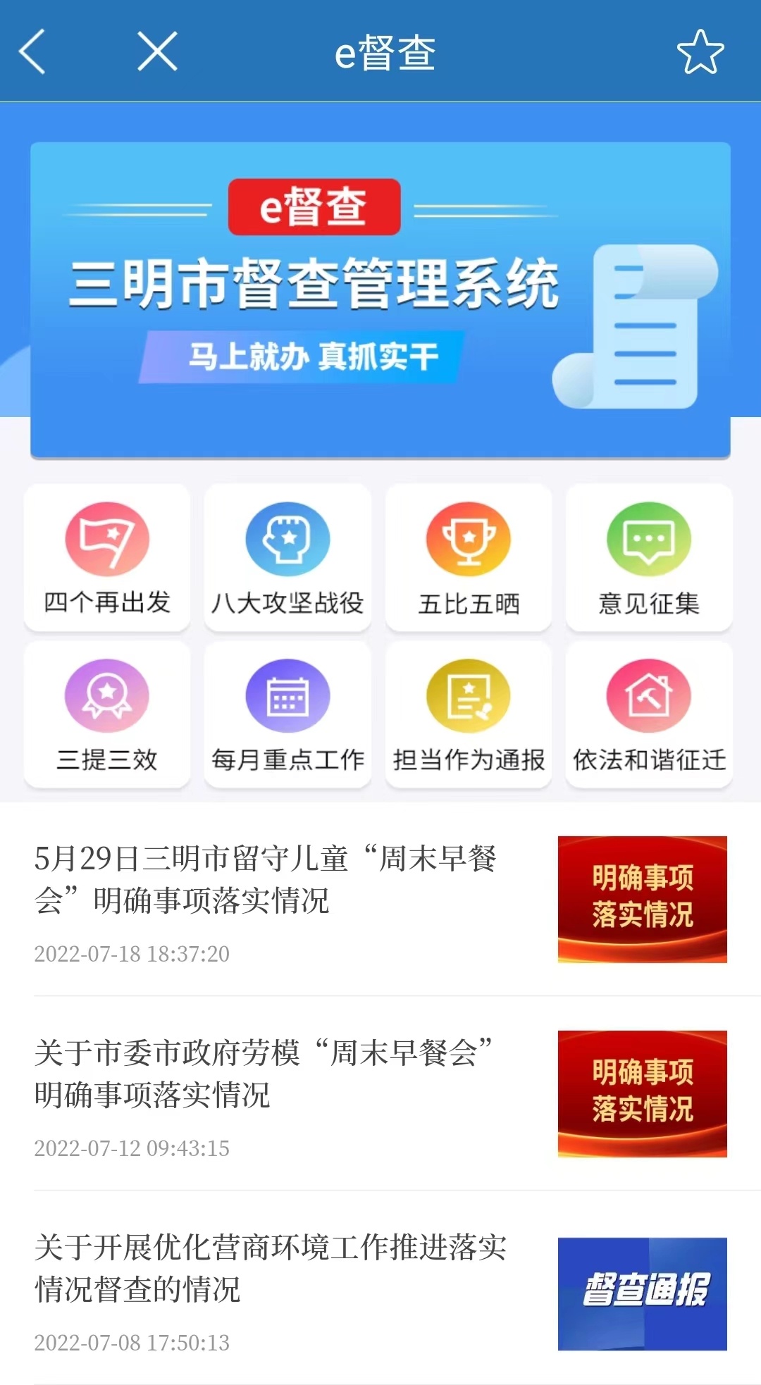 天视自我民视,天听自我民听。三明市把答疑解困作为一项检验为民情感和执政价值的工作,越来越多的党政机关和领导干部通过e三明平台时刻关注群众呼声,“聊聊天”“发发声”。同时,新增“e督查”,开启“互联网+督查”新模式,推动全民参与监督。