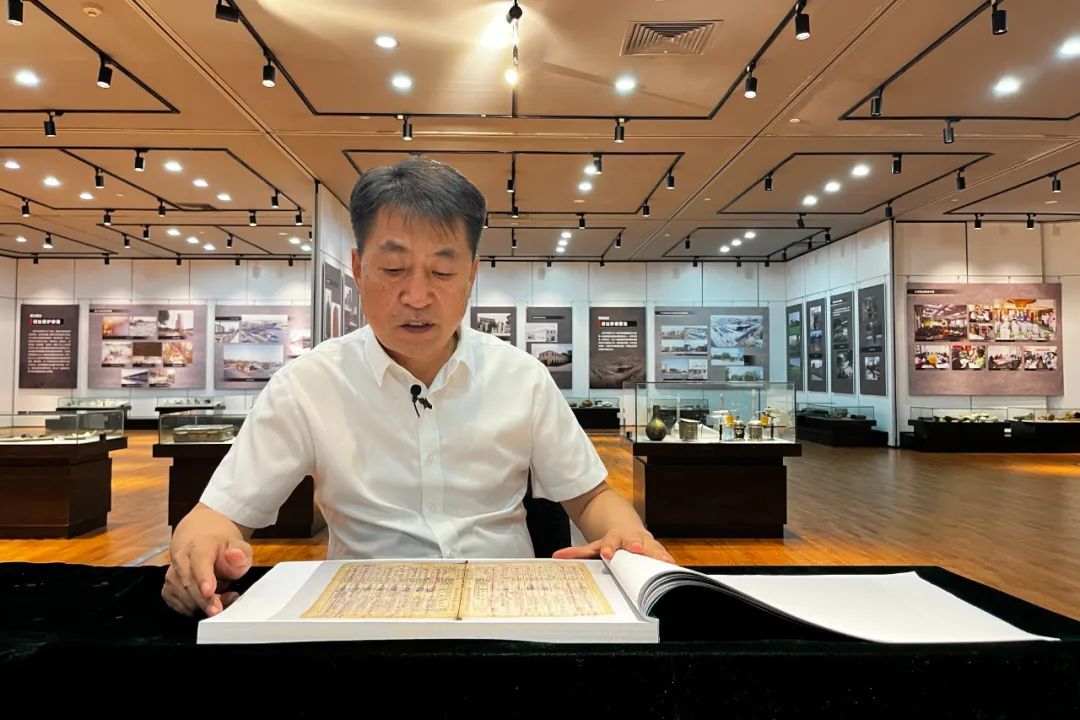 侵华日军第七三一部队罪证陈列馆馆长金成民向记者介绍《关东军化学部留守名簿》(8月13日摄)。新华社记者杨思琪 摄