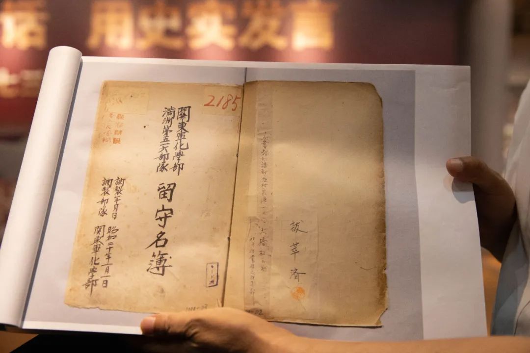 侵华日军第七三一部队罪证陈列馆首次公开的《关东军化学部留守名簿》(8月13日摄)。新华社记者张涛 摄