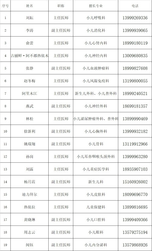 好消息!乌鲁木齐儿童医院公布各科室专家联系电话