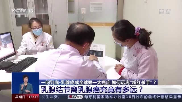 中日友好医院普外科副主任医师 刘宝胤:乳腺结节我们判断它的危险程度,不能以它的大小作为主要依据,有的时候这个结节比较大,2厘米、3厘米,但是它的分类是二类、三类,其实也不可怕,因为它转变为恶性的可能性也是非常低的。对于乳腺钼靶和乳腺B超的分类,是定在了4A或者4A以上,那么它就有一定的癌变的可能,一般是2%到10%的癌变率。