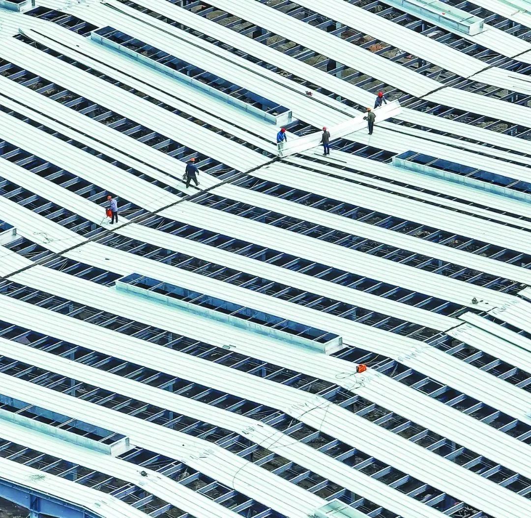 4月1日,安徽肥东县循环经济示范园锂电产业基地项目工地,工人们忙着铺设生产厂房屋顶。近年来,肥东县全面加快建设新能源新材料、光伏光电、大健康大数据、新型交通等战略性新兴产业集群,不断促进经济发展转型升级取得新成效。