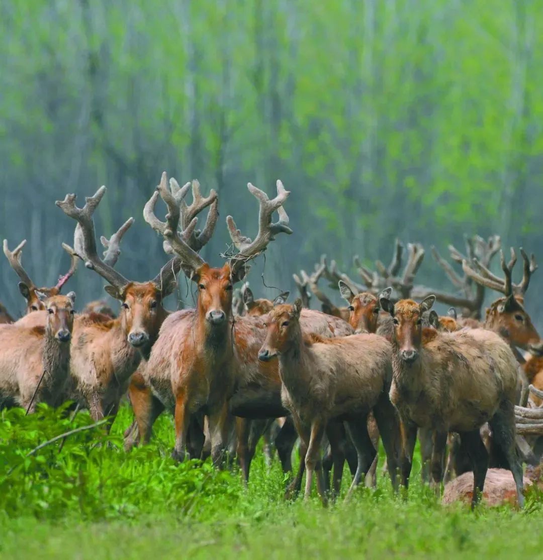 湖南东洞庭湖国家级自然保护区内的野生麋鹿群。