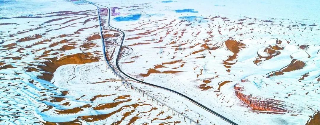 蜿蜒在甘肃省河西地区大漠中的敦煌铁路。