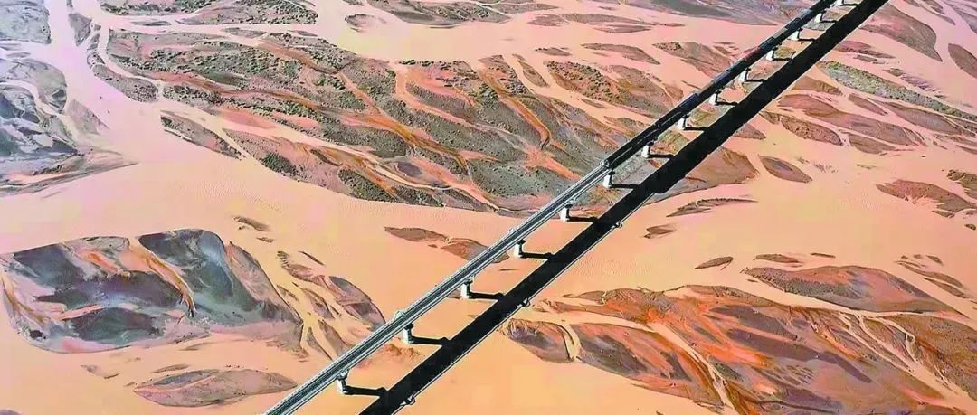列车行驶在青海省境内的青藏铁路沱沱河特大桥上。