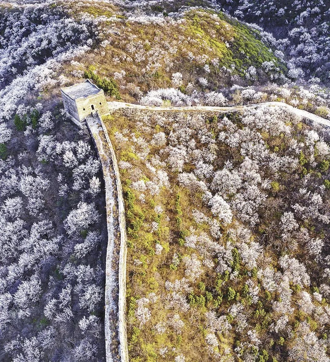 4月6日,北京怀柔河防口长城内外上千亩的杏花盛开,美景如画。