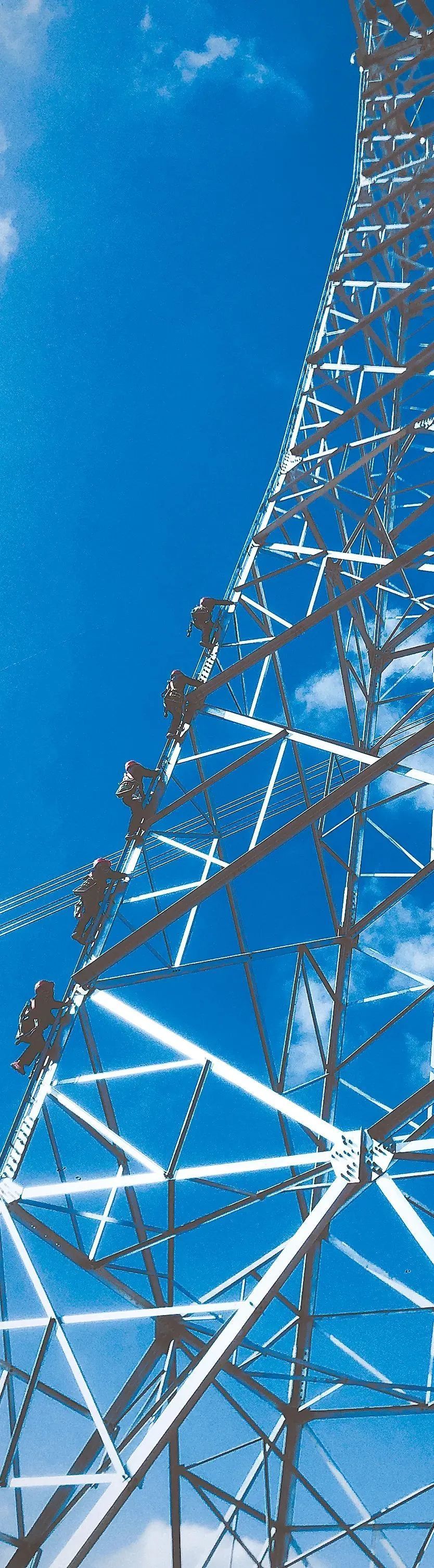 碧空下,铁塔上,几名负重的电网工作人员手脚并用、缓缓攀登。小小的身形是点,矗立的铁塔是线,广阔的蓝天是面,点线面交汇处,动与静结合间,劳动者向上、向前的姿态呼之欲出。镜头里是特高压输电工程的建设现状,映射出追求绿色发展的未来,天蓝、地绿、水净的美好家园,值得期待。
