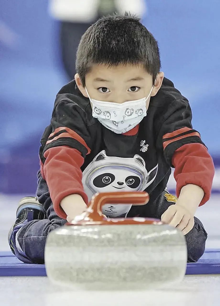 4月16日,国家游泳中心“冰立方”正式对外开放,吸引不少游客前来打卡留念。画面中,聚精会神体验冰壶运动的小朋友成为画面主体,通过竖片的裁剪方式,重点更加突出,是一张精彩的特写图片。同时,图片富有新闻性,展现出冬奥场馆进入赛后利用新阶段,体现了北京冬奥会、冬残奥会对大众参与冰雪活动的带动作用。