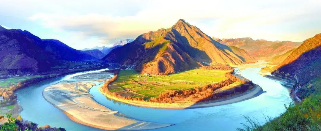 云南省丽江市玉龙纳西族自治县石鼓镇,长江第一湾美景。