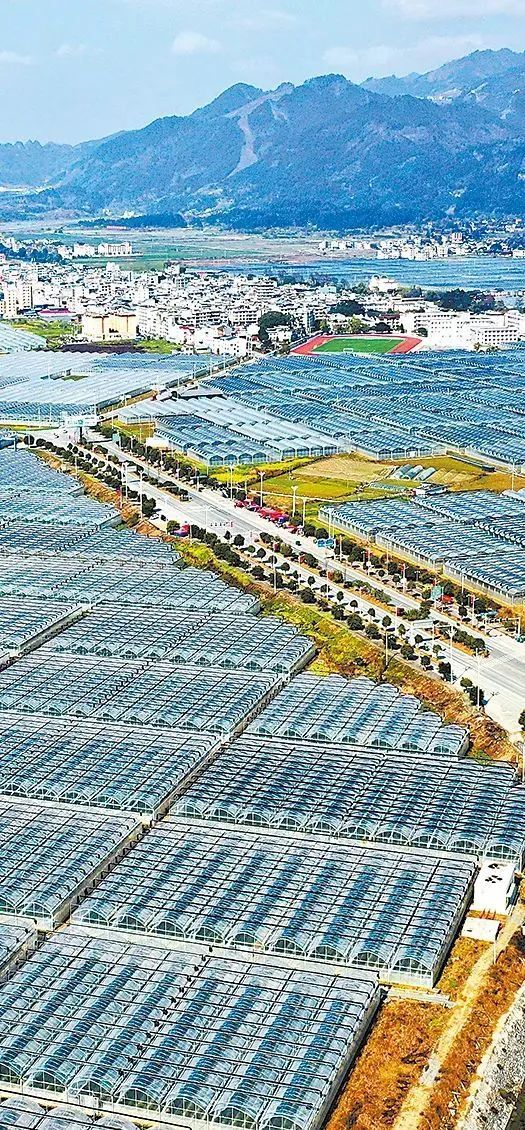 这张好图片,是由拍摄者的镜头和编辑的“剪刀”合力成就。恰到好处的镜头角度,将近处集中连片的蔬菜大棚,以及远处的民居、山峰、晴空次第装进镜框,层次丰富,色调和谐。大胆创新的剪裁手法,用超常规的纵横比凸显画面重心,吸引视觉焦点。图片主旨就在创与编的结合中更加突出:设施农业欣欣向荣,蔬菜保供充足有力,乡村振兴动能澎湃。