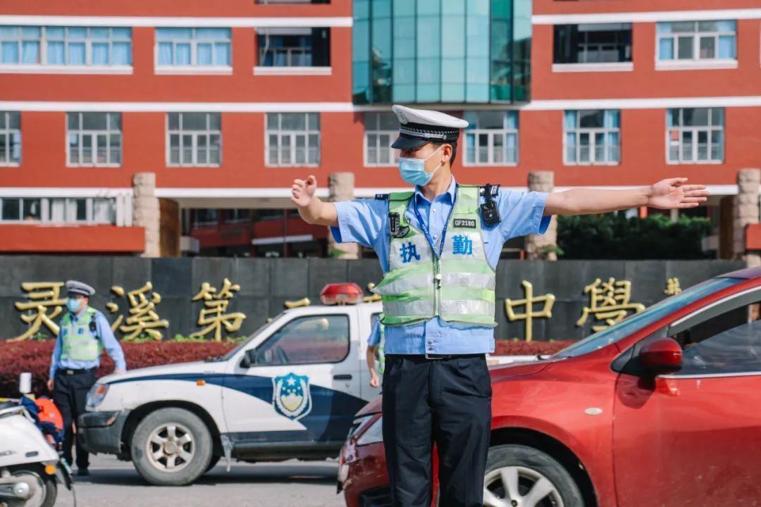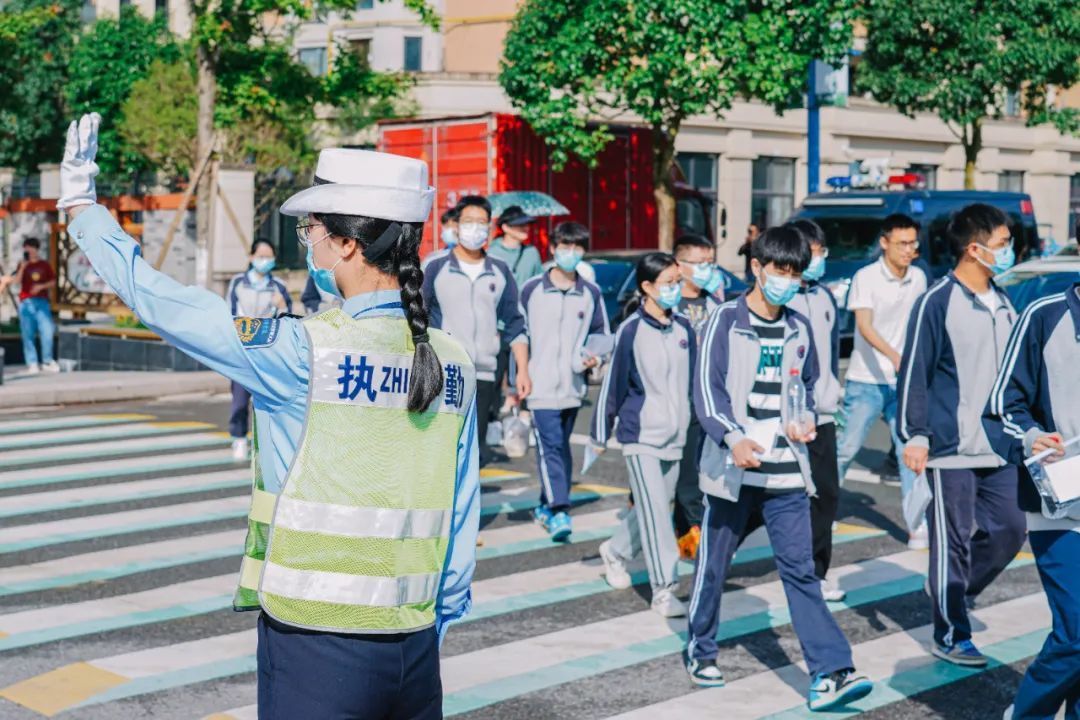 “戴好口罩,保持距离!”6月7日是高考第一天,上午8点不到,台州市仙居县仙居中学的考点外就已经聚集了许多考生,而正在维持秩序的警察叔叔今年却有些不同。