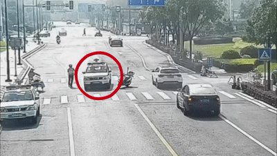 一位交警骑着摩托车