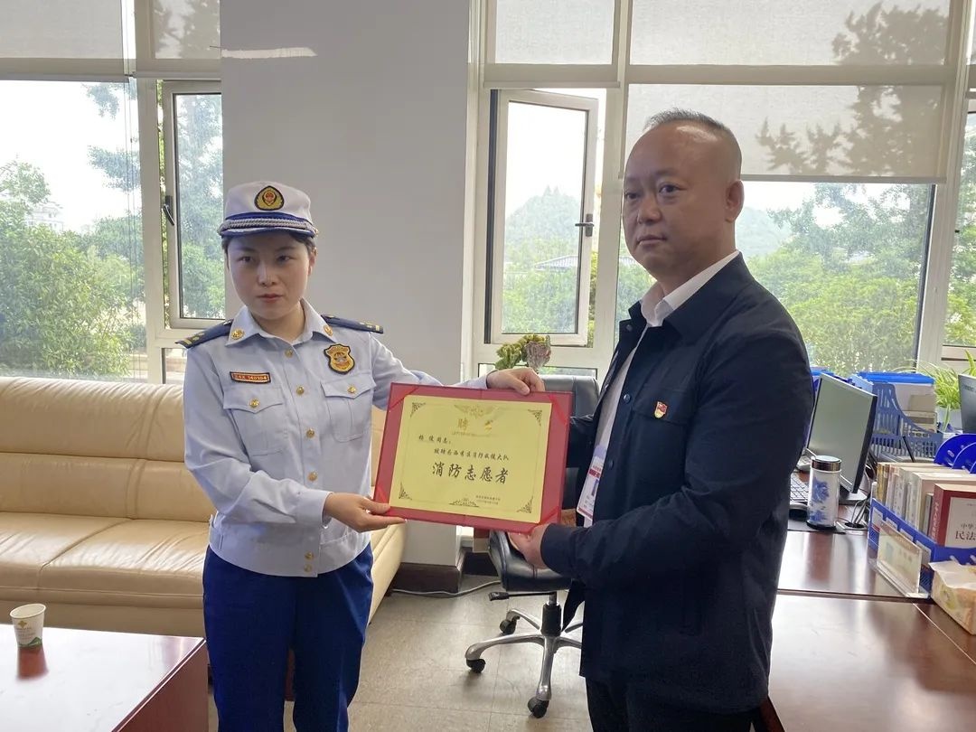 随后,西秀区消防救援大队给杨俊颁发了聘书,聘请他做消防志愿者,参与到消防安全宣传工作中。