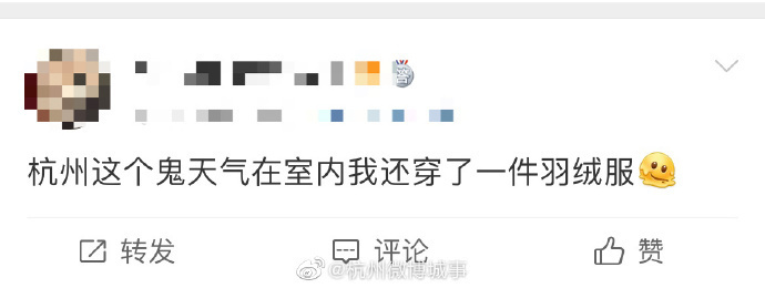 杭州网友吐槽今天的“精分”天气。(图片来源于网络)