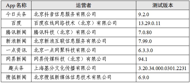 近期,中国网络空间安全协会、国家计算机网络应急技术处理协调中心对“新闻资讯类”公众大量使用的部分App收集个人信息情况进行了测试。测试情况及结果如下: