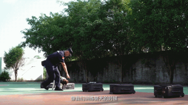 一次,唐琥犀带牛牛参加全路搜爆犬比赛