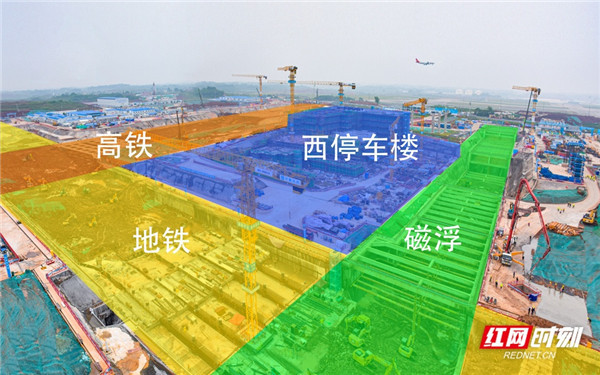 长沙黄花国际机场综合交通枢纽工程项目布局。