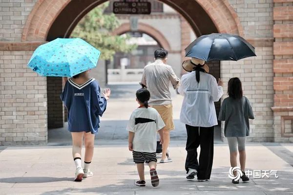 △6月20日,北京高温蓝色预警中,中午前后天气炎热难耐。