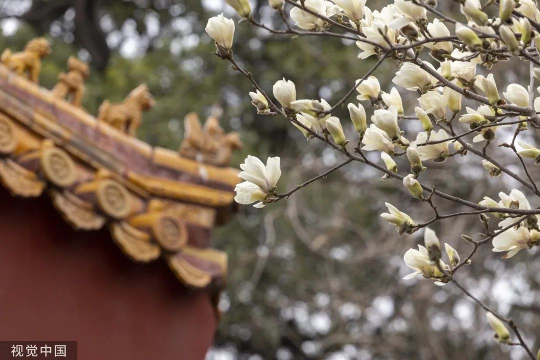 ↑ 2022年3月30日,北京,故宫御花园东北角盛开的白玉兰。(杨巍/视觉中国)