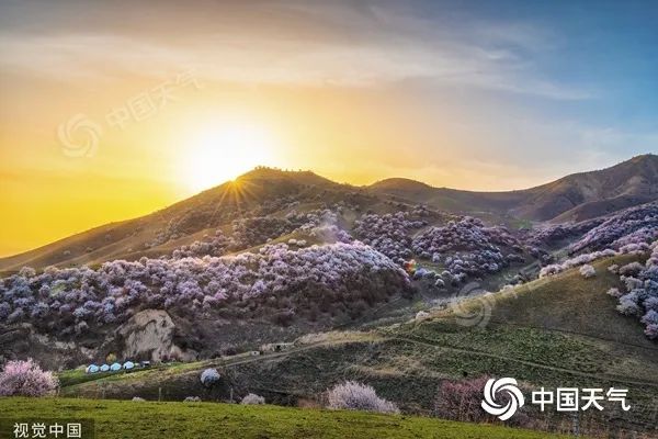 在新疆伊犁的吐尔根杏花沟,每逢春季,杏花漫山遍野绵延十几公里。今年清明前后这里将迎来杏花开放,花期将持续到4月中旬。宁夏赏杏花胜地固原在3月底到4月初也陆续迎来花开,4月上旬正是赏花的最好时节。