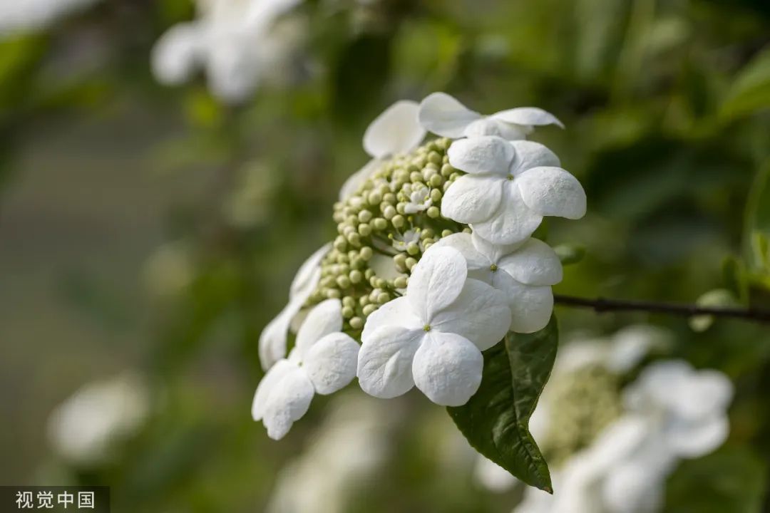 ↑ 2019年4月13日,江苏扬州,街头的琼花绽放。(陈扬/视觉中国)