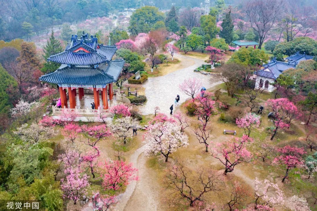 早春是探梅的好时节。随着天气逐渐回暖,我国江南、西南等地梅花次第开放,为墙角、郊野增添了些许春意。中国天气网推出的2023全国早春赏花地图上显示,贵州荔波万亩梅园、湖北武汉东湖磨山景区梅园、浙江杭州植物园、安徽歙县卖花渔村、上海世纪公园1月中旬之后梅花陆续开放,目前正值最佳观赏期,红粉的梅花灿若云霞,到处散发着幽幽清香。拥有“天下第一梅山”美誉的江苏南京梅花山,品种繁多的梅花目前已经渐入佳境,可以约上三五好友一起去享受这“梅”好时光。