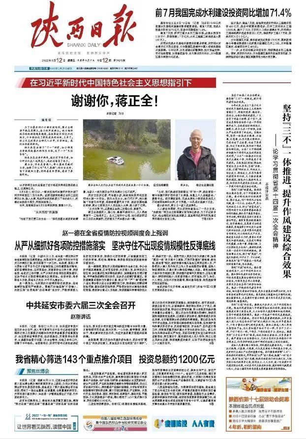 今日,《陕西日报》头版头条刊发这名重庆汉子舍己救人的报道——
