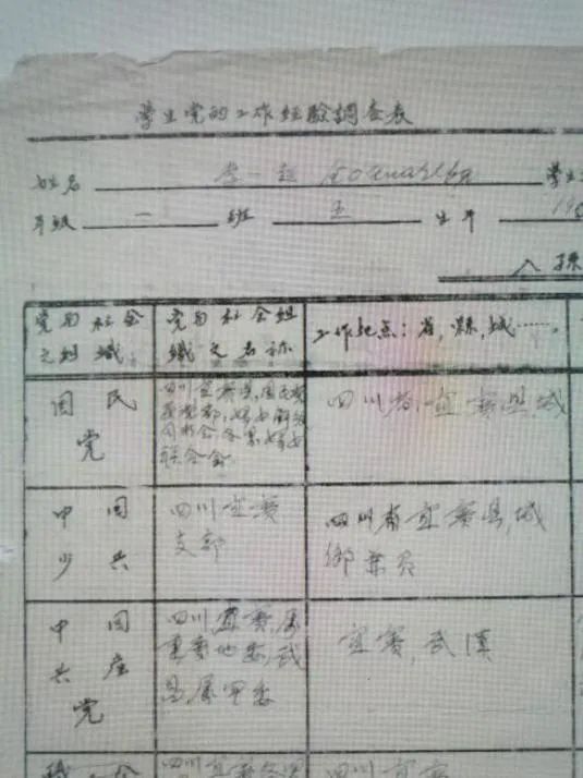 赵一曼在莫斯科中山大学留学期间填写的调查表的照片。(受访者供图)