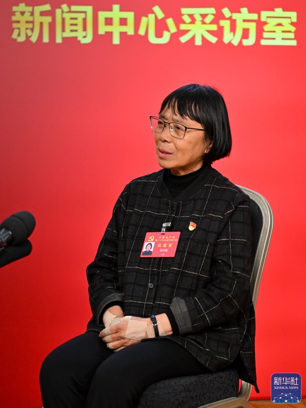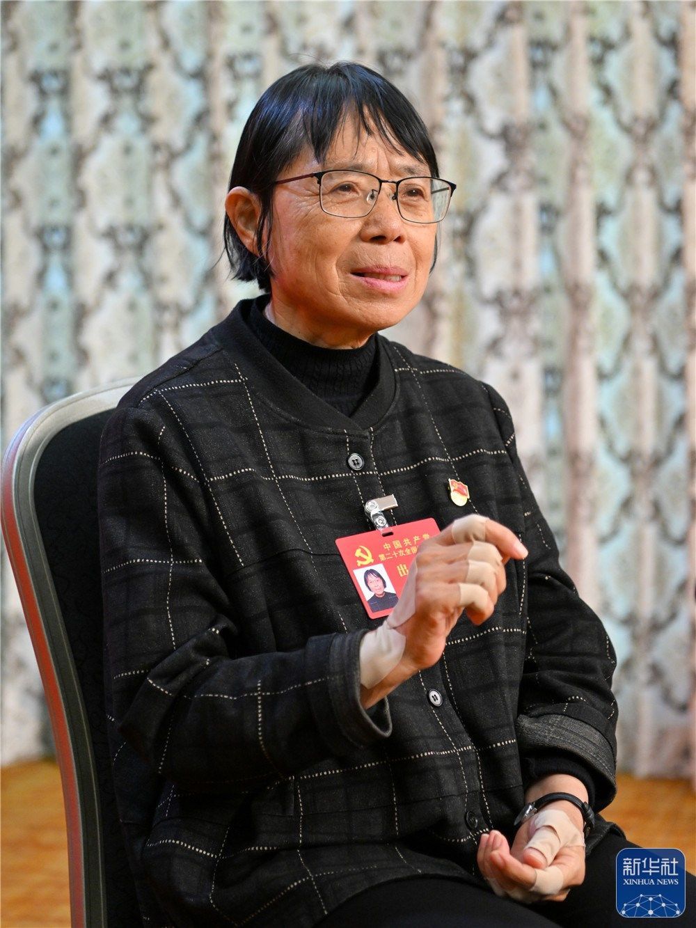 10月16日,张桂梅代表接受记者采访。新华社记者 陈益宸 摄