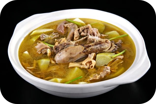 大别山下第一汤——商城老鸭汤,精选生长期十月以上淮南麻鸭和信阳青萝卜为食材,采用传统的清炖技法烹制而成,具有皮薄、骨细、肉嫩、汤鲜、味美等特点。