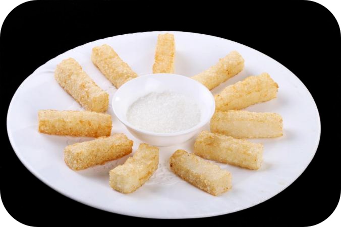 信阳当地的一道传统风味小吃,以豫南特产红薯粉条为主料精心煎制而成。其色泽金黄、皮薄馅多、软糯爽口,也是早餐的不错选择。