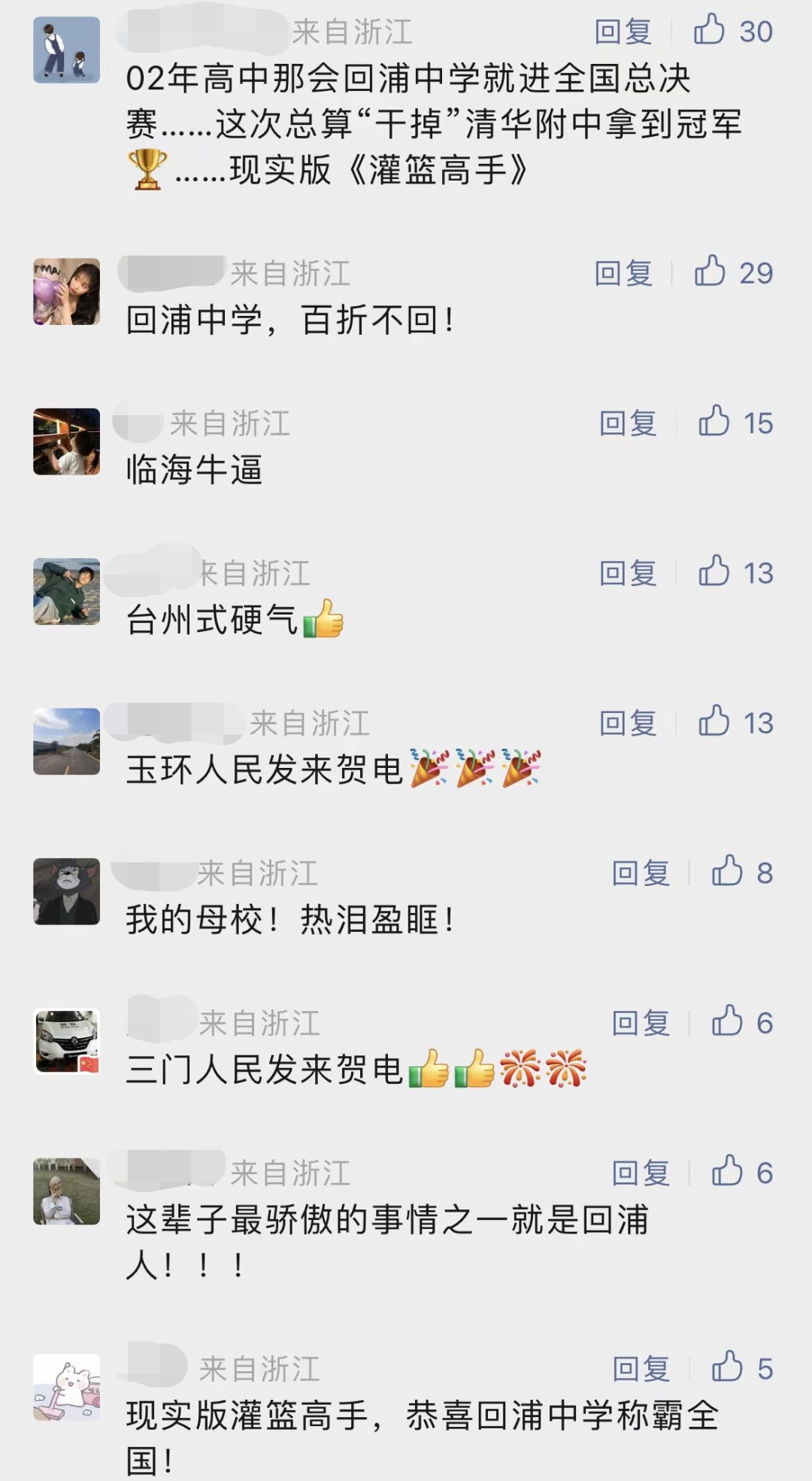 “回浦中学!总冠军!”