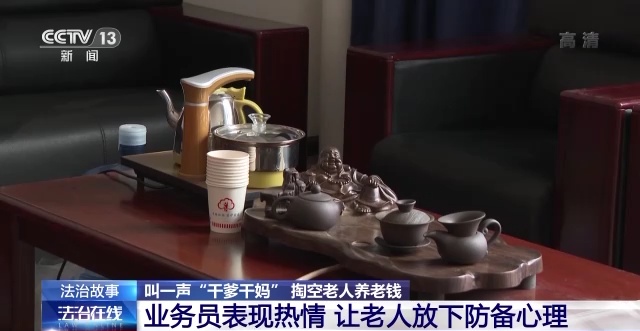 一来二去这些业务员就跟老人熟悉了起来,有些甚至还认老年人当干爹干妈,如此热情的服务,老年人也就慢慢放下了防备心理,这个时候业务员就会趁虚而入,向老人们介绍公司里所谓的养老“福利”。