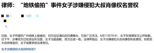 广州地铁事件的新闻报道下,有网友评论:“女孩把大叔的视频发到网上,也不是为了挣钱,咋还涉及到侵犯肖像权的事儿了呢?”