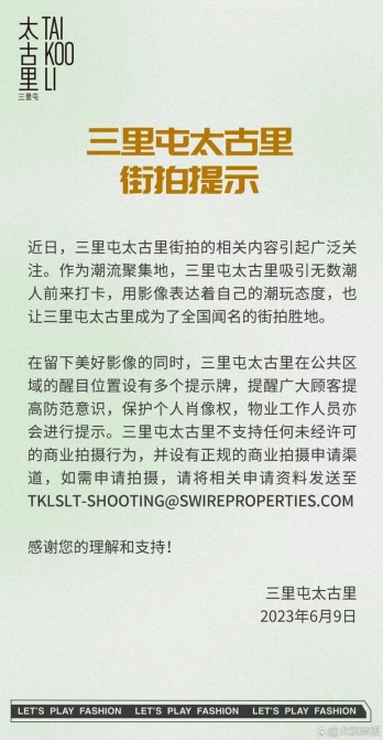 无独有偶,数日前在网络上掀起热议的“太古里牵手门”,同样引发了一波商业街拍是否侵犯肖像权的大讨论。