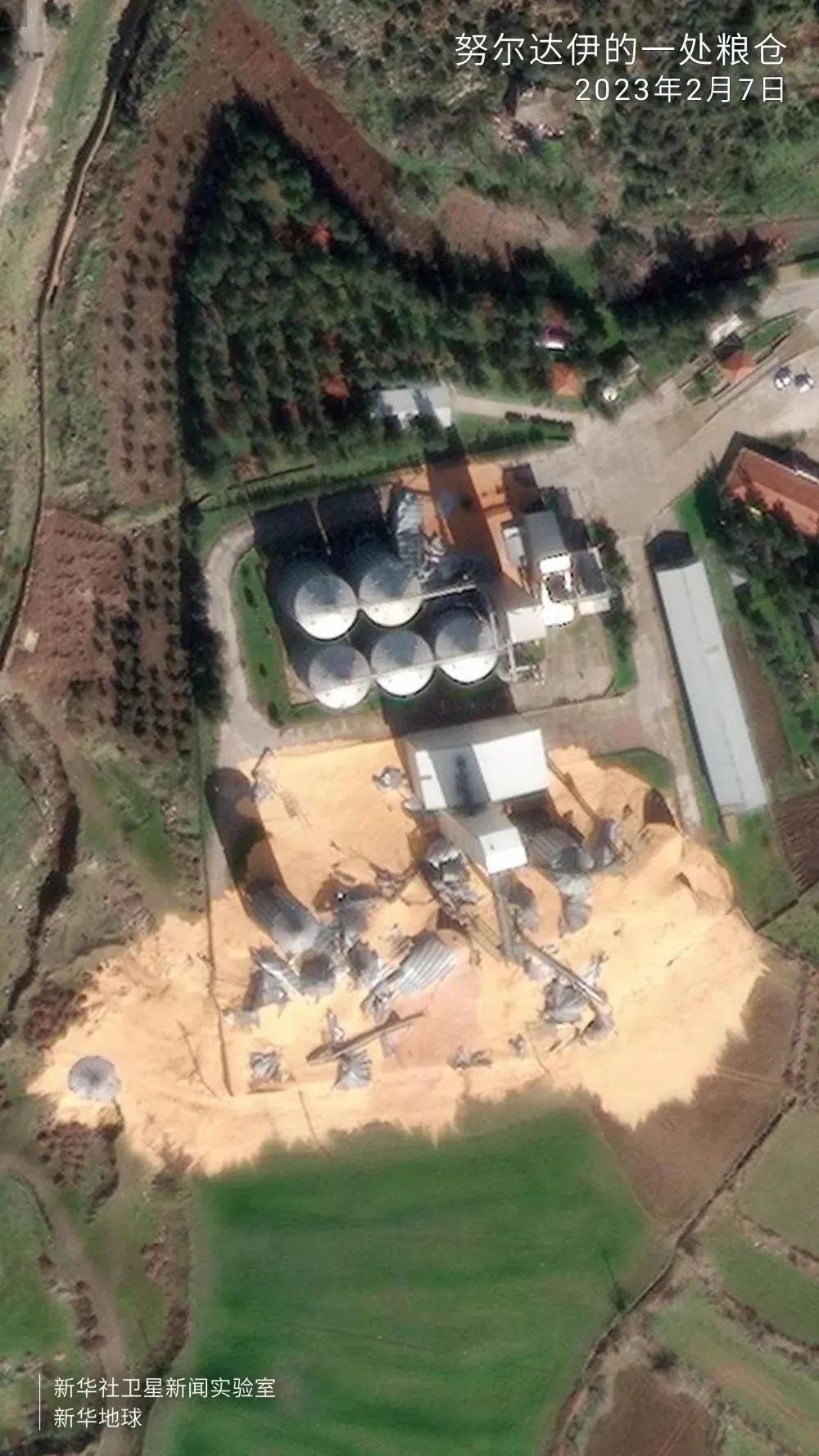 多处工业设施也有不同程度损毁,位于努尔达伊西部的一处粮仓损毁严重,近半粮仓被震倒,粮食摊散一地。