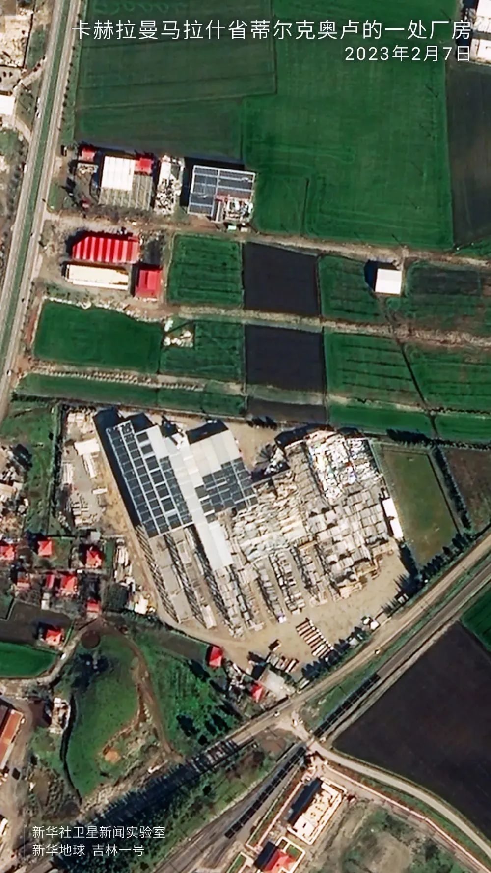 同样位于该省的蒂尔克奥卢也遭遇强震影响,从卫星图可见,该地区一处工业厂房房顶在震后受损脱落。