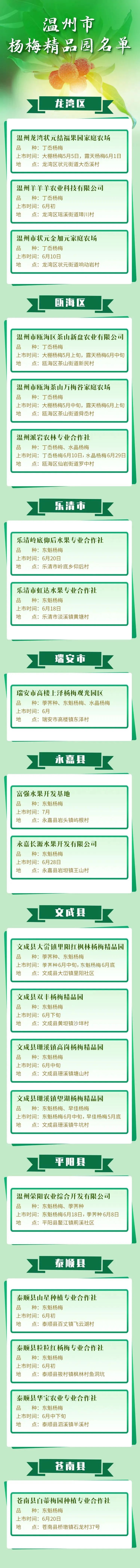 近日,温州市农业农村局公布温州十大杨梅采摘游线路及一批杨梅精品园名单,为市民朋友采摘杨梅、游山玩水提供出行指南,一起来共享“梅”好时光吧!