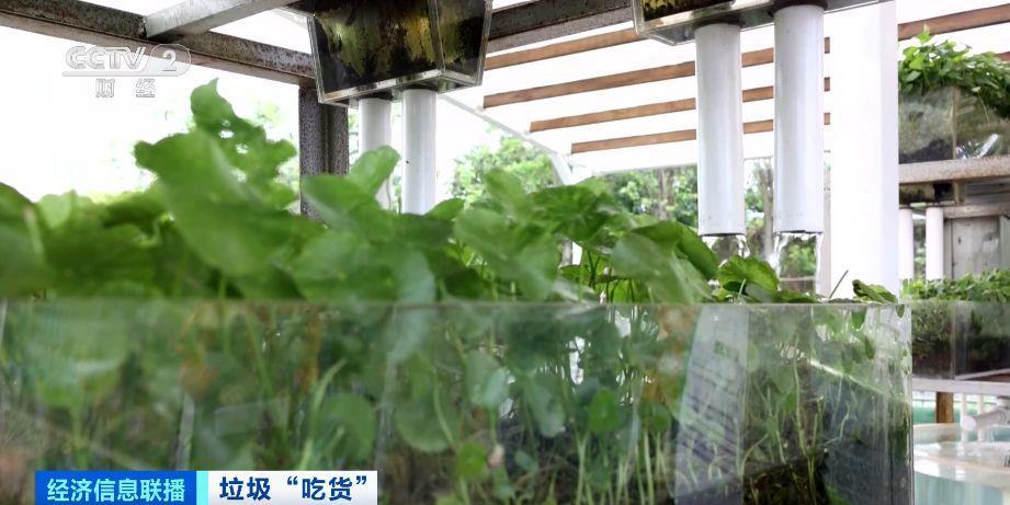 根据测算,1克黑水虻的虫卵孵化出的幼虫,可处理约10公斤餐厨垃圾等有机废弃物,可产生1.5公斤~2公斤鲜虫和2公斤~4公斤的有机肥。基地还探索出了一套“鱼菜共生系统”,实现了垃圾绿色循环利用。