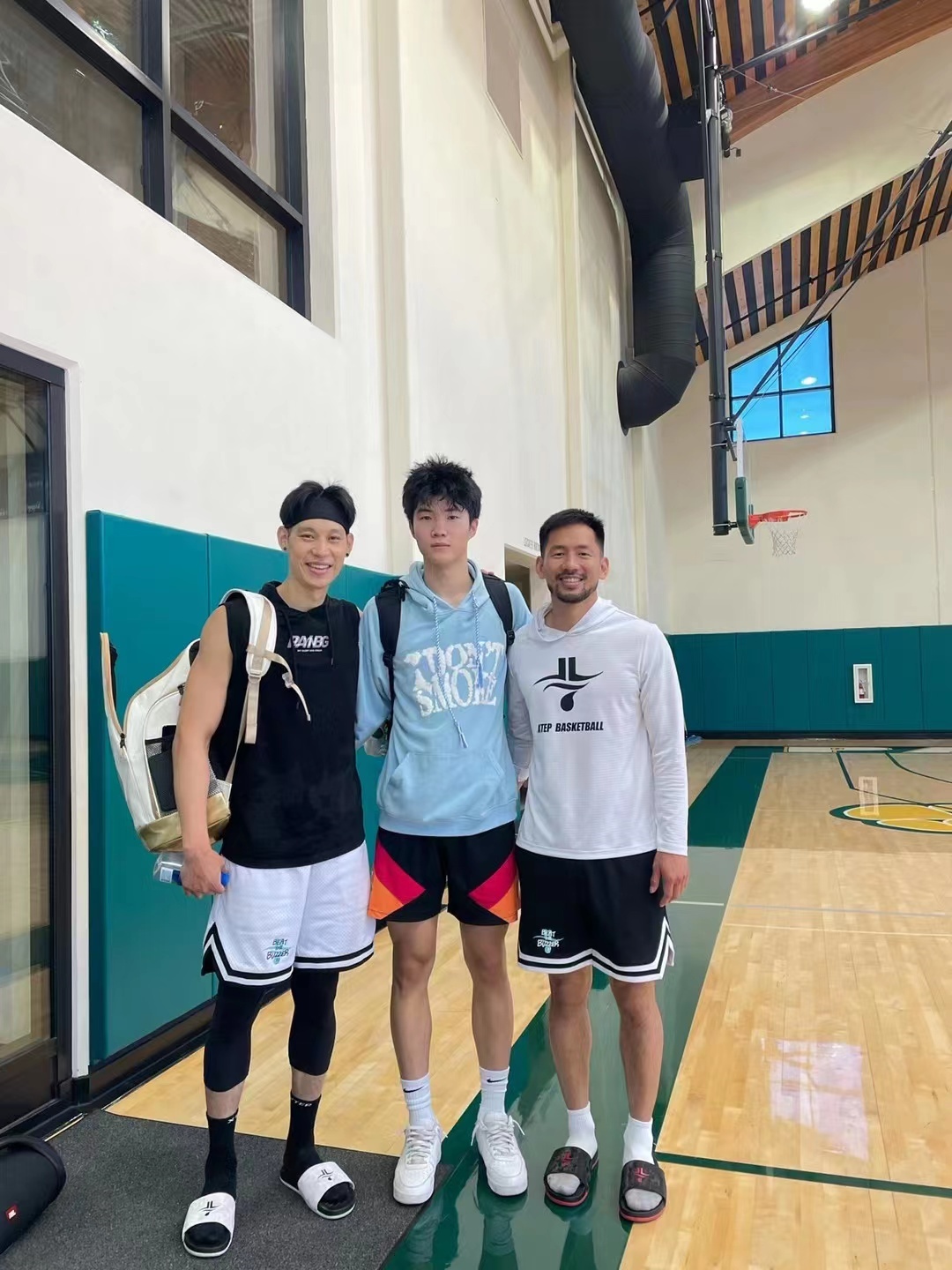 偰李永炜(中)在休赛期与林书豪一同训练