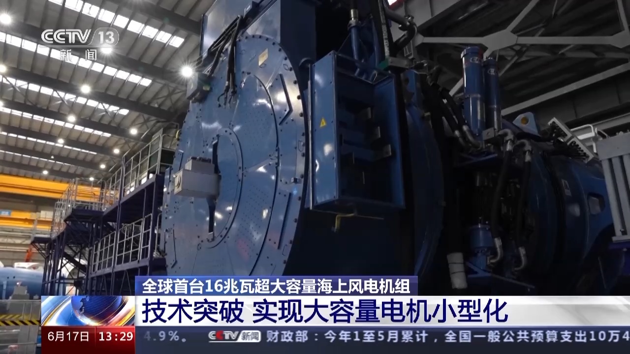 机舱发电系统,是海上风电机组最为关键的结构之一,负责将叶轮捕捉到的风能转化为电能。16兆瓦海上风电机组,在保证发电量的前提下,将发电机的重量降低到了20吨左右,实现了大容量电机小型化的技术突破。