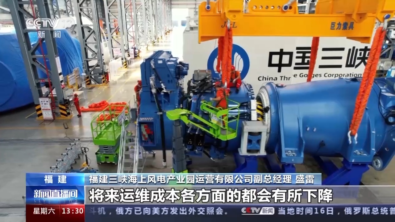 福建三峡海上风电产业园运营有限公司副总经理 盛雷:对绿色的电能大家都有一个贵的概念,但是通过我们不断地技术迭代,不断地做大风机容量,将来运维成本各方面的都会有所下降,全生命周期地下降,可以有效降低我们整个海上风电的运行成本。